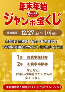 12月27日~1月4日まで一年間の感謝を込めてラウム年末年始ジャンボ宝くじを開催します!!