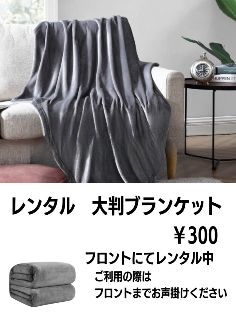 サイバック宗像店では、ふわふわの 大判ブランケットを300円でレンタル中。